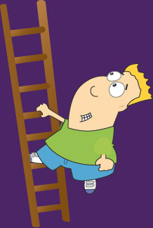 A large boy on an unstable ladder A movable arm